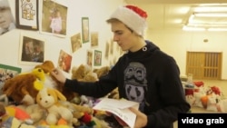 "Это все студенты собирали, и наши преподаватели, и администрация", – показывает большой мешок подарков студент Юлиан Ткач.
